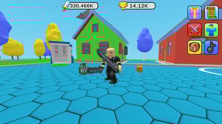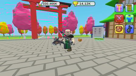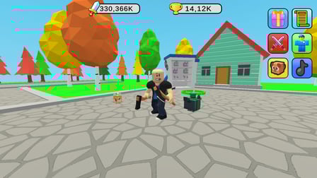To play Obby Fighter: Village Duels, use the arrow keys for movement and the spacebar to attack. On mobile devices, use virtual buttons to navigate and perform attacks. Select your weapon from your arsenal, ranging from quirky bags of seeds to formidable cyber swords, to take on various enemies. Completing daily quests rewards you with valuable resources and helps you level up your character!