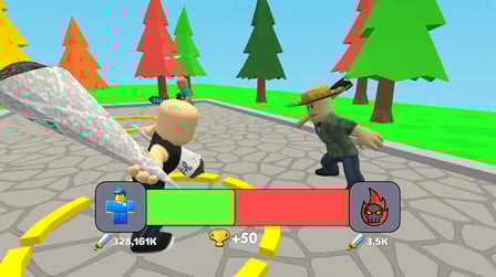 Step into the exhilarating world of Obby Fighter: Village Duels, where you can engage in thrilling battles and immerse yourself in a captivating storyline. This free browser-based gameplay offers unique features, allowing players to harness various weapons and power-ups to dominate their enemies. Train hard, arm yourself to the teeth, and prepare for fierce duels against unlikely foes!