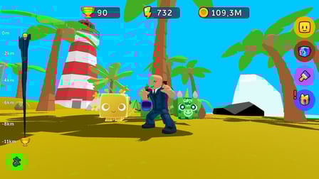 Playing Obby is a breeze on both a phone and computer. Simply navigate your diver using the arrow keys or touch controls. Collect treasures while dodging obstacles, and as you gather resources, upgrade your diver and adopt pets. Aim to break records in the depths!