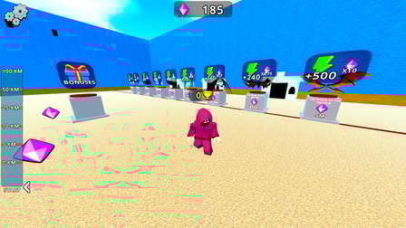 To begin your journey in Obby: Jump into Pool Squid Game 3: 1. Launch the game on your browser—no downloads needed. 2. Use the arrow keys or WASD to control your character, directing them strategically to climb higher. 3. Gather Trophies and Crystals during your journey. 4. Use the crystals to purchase wings which enhance your speed and grant special abilities.