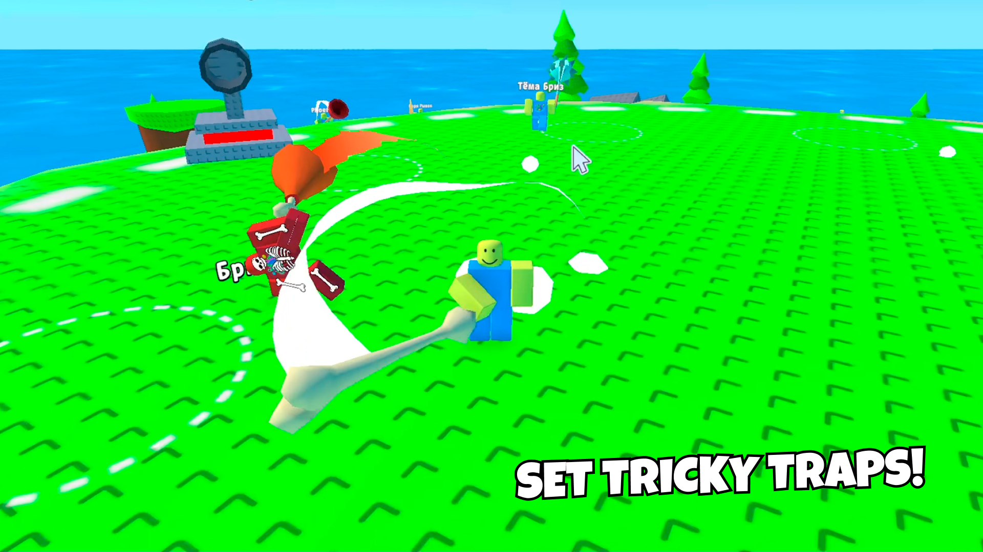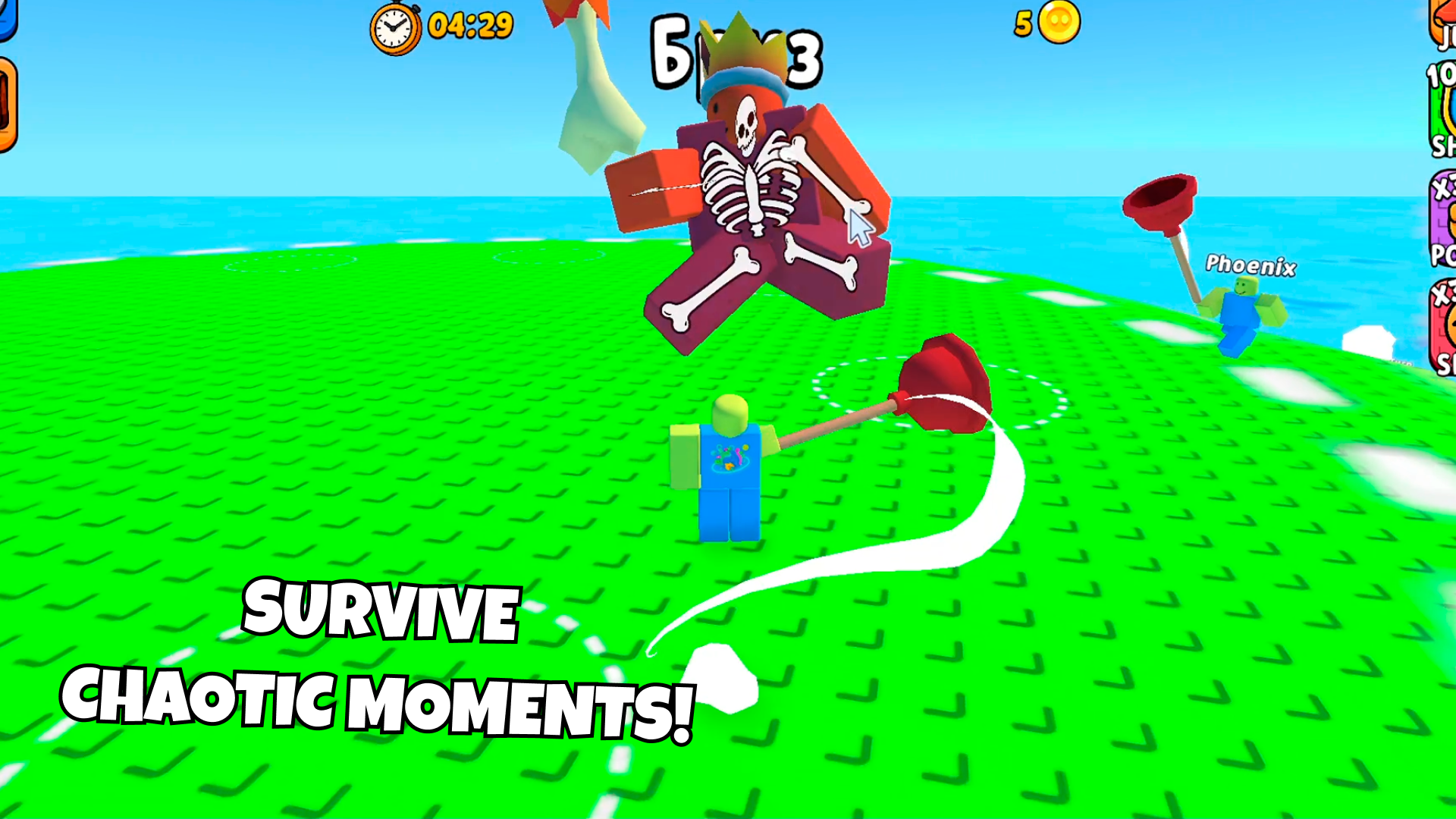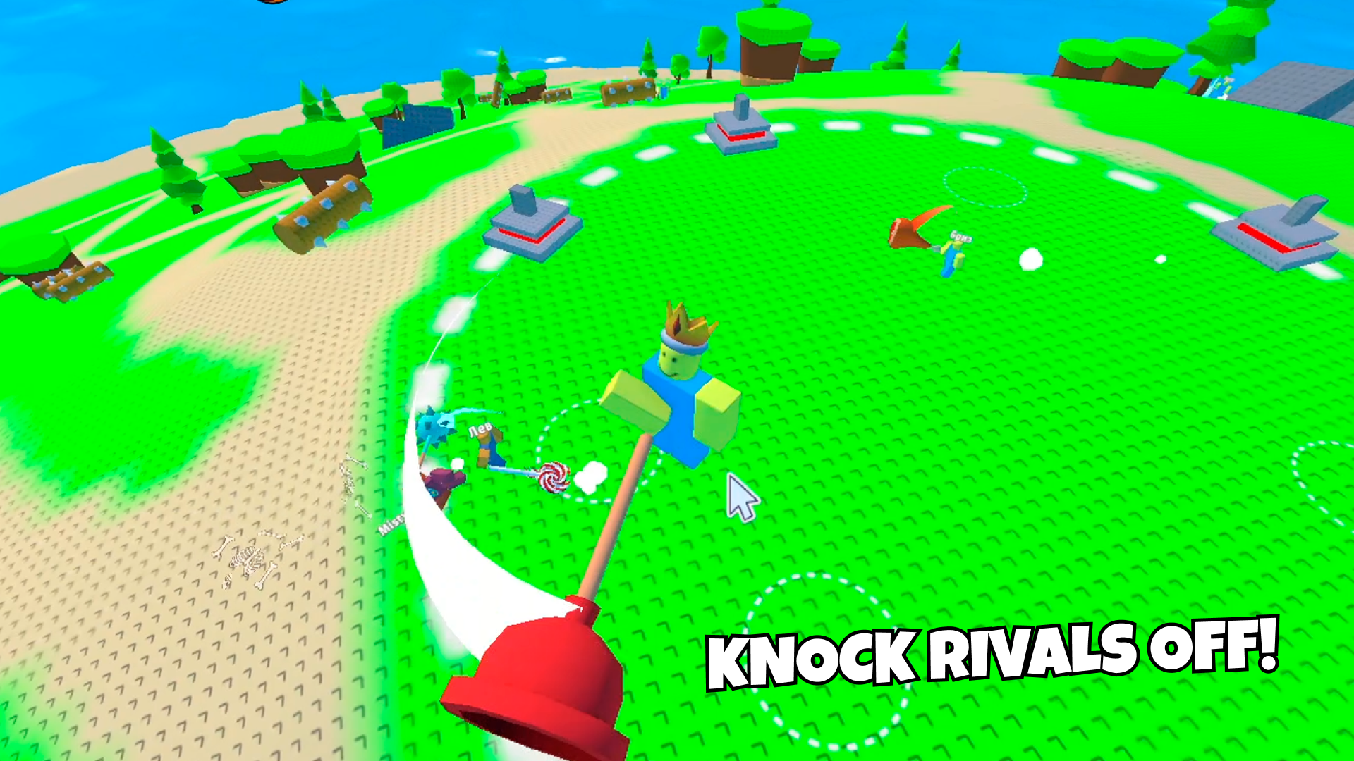 - Physics-Based Combat: Every hit sends players flying with exaggerated knockback—timing your swings matters.