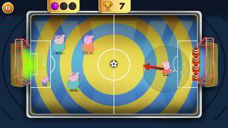 Playing Peppa Pig: Soccer! is easy and fun! If you're on a phone, tap the character you wish to play as, then use your finger to aim at the goal. Swipe to kick the ball. For computer players, simply click on your character and drag the mouse to aim; clicking again will strike the ball toward the net. The objective is to score as many goals as possible before time runs out!