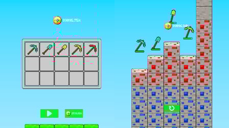 The game operates with a simple click interface. Chosen pickaxes drop with a click, breaking blocks immediately. Monitor the coin collection and make timely upgrades to your tools for enhanced efficiency!
