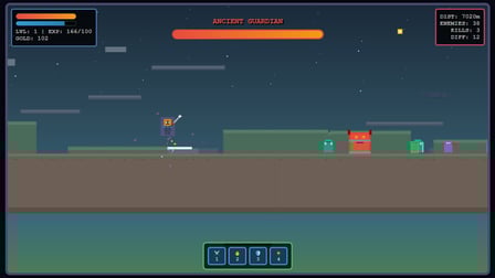 Use the arrow keys to navigate your knight. Press 'Z' for your melee attack and 'X' to jump, allowing you to ascend platforms or evade enemy strikes. Manage your resources wisely and maintain a keen eye for upgrades that appear throughout your journey. Make sure to leverage your newfound abilities against tougher foes!