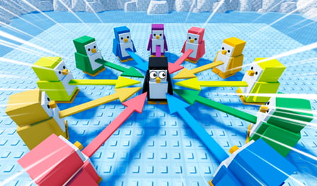 - Voxel Arena Style: Clean, blocky characters on a studded ice platform—classic Roblox vibes meet survival chaos.