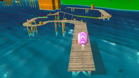 The main challenge is staying on the track. There are no walls or railings—just open space and water below. Sharp turns, ramps, and narrow bridges force you to slow down or risk wiping out. One bad bounce and you're back at the checkpoint. The seagulls flying around are just decoration, but they add to the seaside chaos vibe.