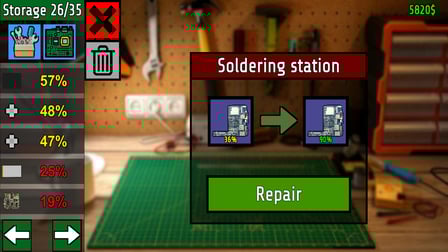 To start, select a broken device from your workshop interface. Use your mouse or touch screen to tap on components and assess their condition. Follow the prompts to diagnose issues, purchase parts if needed, and replace damaged components. Make sure each device meets its functional requirements before selling it!