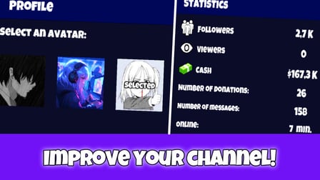 Step into the exhilarating world of Simulator: The Streamer's Path, where players can immerse themselves in the electrifying experience of being a live streamer! This browser-based game allows you to embrace the thrill of broadcasting, connecting with thousands of viewers while creating engaging content from the comfort of your desktop or mobile device. Are you ready to attract fans and manage your streaming career? Join now, and let's dive into the fun!