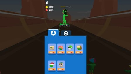 New skateboards can be unlocked by collecting gold coins and rubies during races, which allow you to purchase and upgrade your gear.