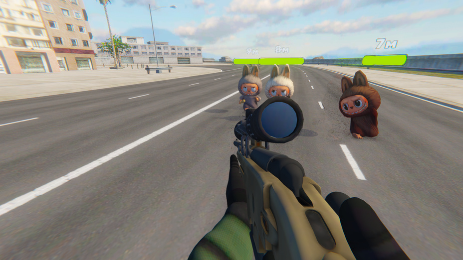 Start by launching Sniper: Hunting for Labubu on your browser. On a computer, use the mouse to aim and click to shoot. On a mobile device, use touch controls for aiming and shooting. Move around the environment with WASD keys on desktop or swipe on your phone to evade enemy attacks and gain strategic positions.