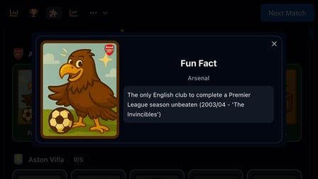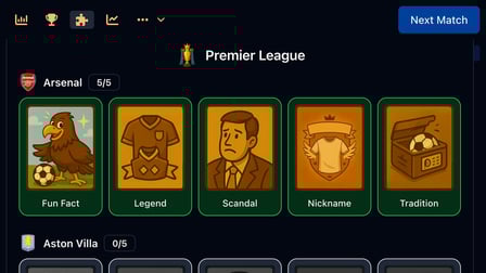 You earn collectible cards by competing in matches and championships, which reveal stats and fun facts about your opponents’ clubs.