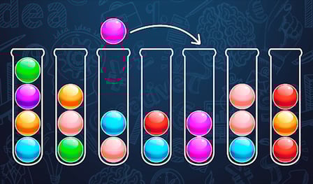 The Sort Colored Balls Puzzle is an engaging and relaxing puzzle game that appeals to fans of deductive reasoning and pattern recognition. This interactive browser-based HTML5 game challenges players to sort colored balls into their respective tubes, matching each ball with others of the same color. The game focuses on providing an entertaining and addictive experience through its carefully crafted gameplay.