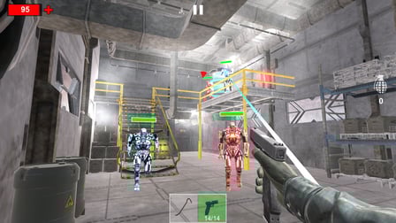 - Attack: Use your mouse or touch controls to aim and shoot at the enemy robots.