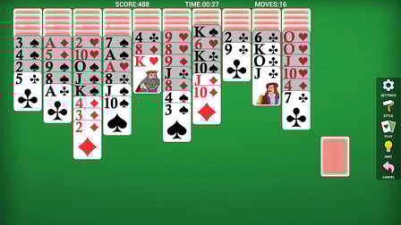 To control your game, simply tap or click on any card to move it. You can drag cards to the foundation or tableau. Use the undo button by clicking it whenever you aim to reverse your last action, and the hint button for assistance during tricky moments.