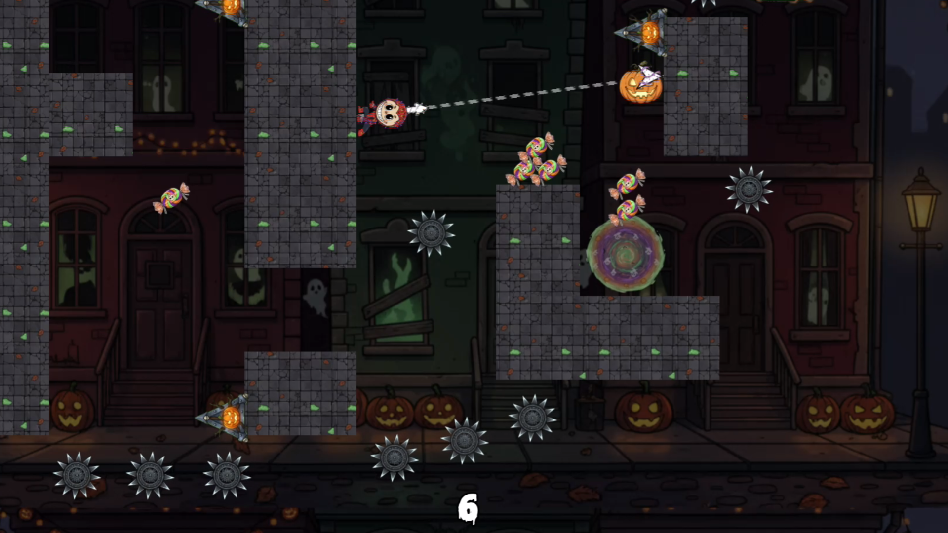 Getting started with Spider-Bubu is a breeze. On mobile devices, simply tap and release on your screen to swing from one point to another. On a computer, click and release your mouse to achieve the same effect. Your goal is to collect all the pumpkins in sight and reach the portal to advance to the next level.