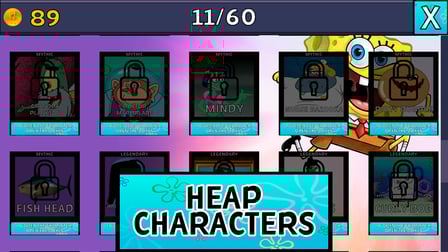 - Explore the world of Bikini Bottom with 60 unique characters.