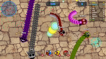 For mobile, drag your finger to move and tap to unleash attacks! For computer users, simply use your mouse for navigation and left-click to execute powerful moves. Your goal: push other snacks out of the arena while collecting edible power-ups!