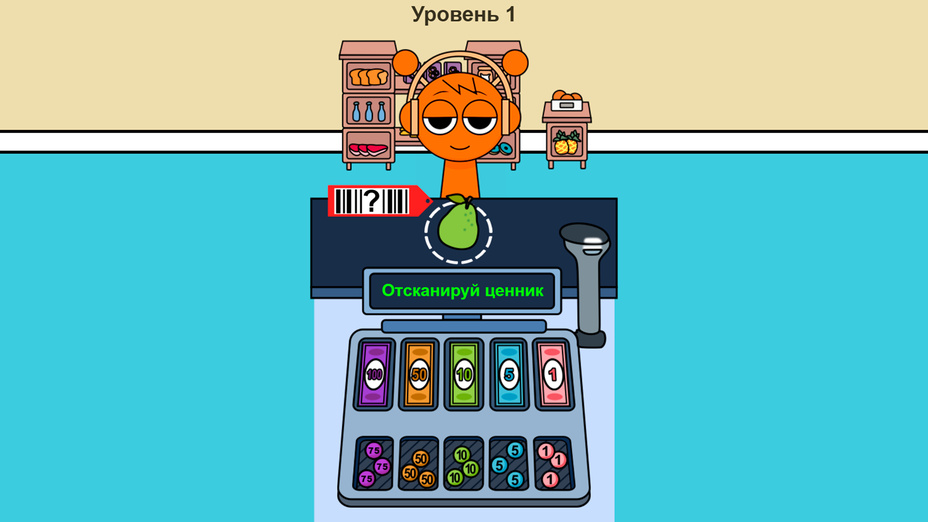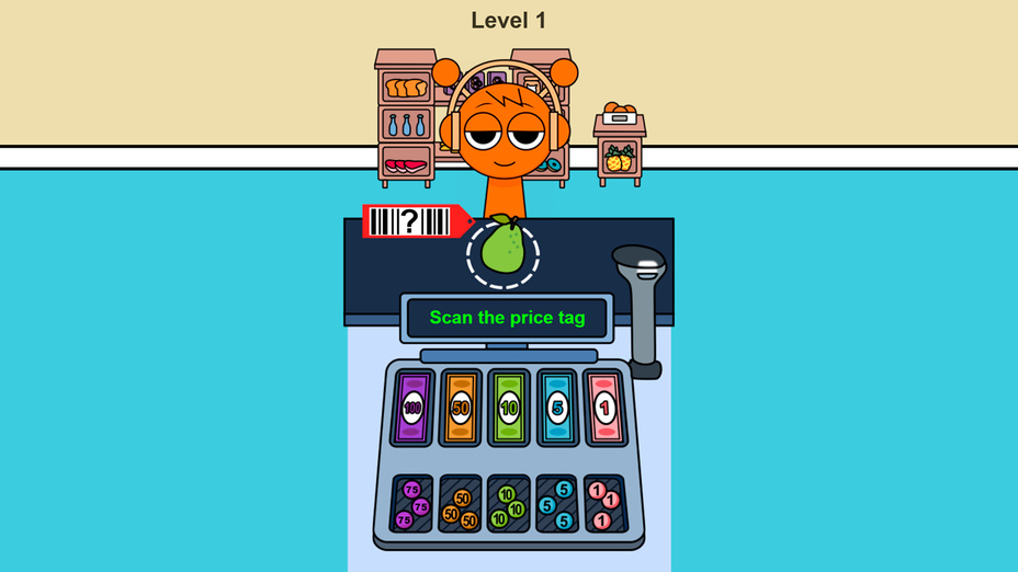 The game features three exciting mini-games: counting change, punching products, and reorganizing the shelves. Each presents unique challenges to enhance your skills!