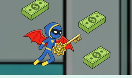 Rescue mission. Platformer action. Stickhero Love Stickgirl drops you in a lab full of coins and danger. Find the golden key. Free Stickgirl from the cage. Simple goal. Hard execution.