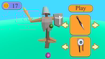 - Select your preferred throwing object from the available options (knives, shurikens, or an axe).