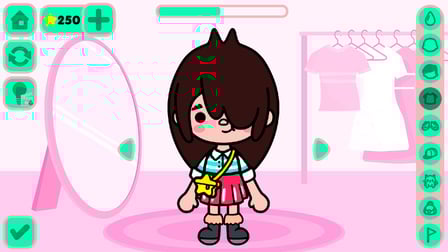 Use your mouse to click and drag items or tap on your mobile device to select and move objects around the screen. To customize your character, navigate to the 'Create' menu, where tap and swipe actions allow you to change facial features, hairstyles, and outfits.