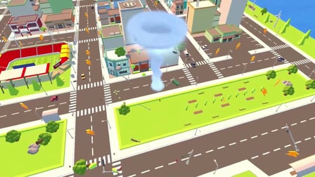 On PC, use the following keys: W to move forward, A to move left, S to move backward, and D to move right. On mobile devices, control your tornado with the intuitive on-screen joystick, allowing for seamless maneuvers and dynamic gameplay.