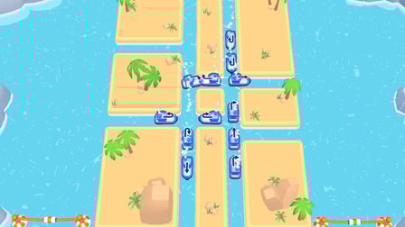 Start by accessing Traffic Jam on the River on your computer or phone. From the main menu, begin the first level. Click or tap on a boat to select it, then choose the direction you want it to go. Keep in mind that each ship moves strictly along predetermined paths. Your objective is to untangle the configurations and exit the port successfully.