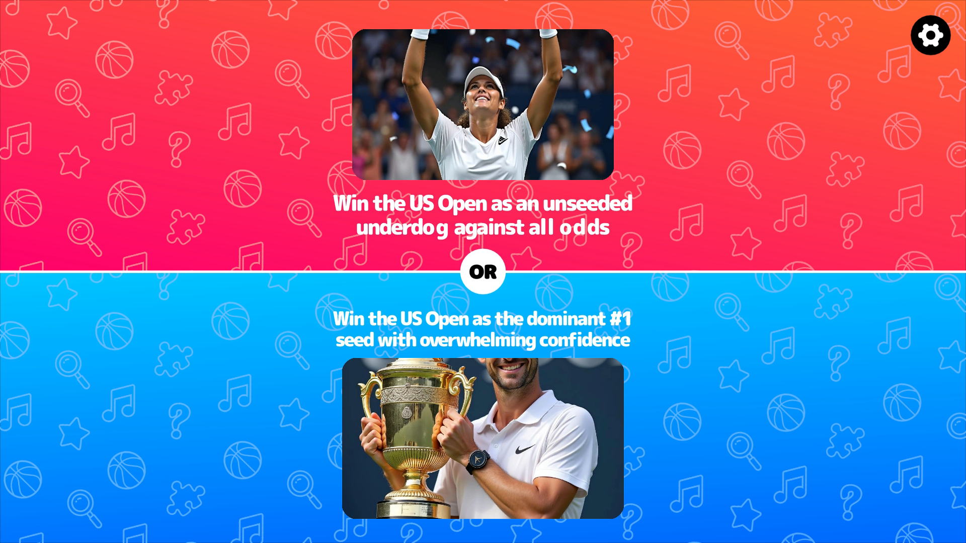Immerse yourself in the thrilling world of US Open Tennis, a game that blends the excitement of professional tennis with the strategic choices of a classic dilemma game. This free online experience challenges you with engaging "Would You Rather" questions inspired by the prestigious US Open. Whether on your phone or computer, this game offers a fresh twist on decision-making, ensuring endless hours of entertainment and strategic fun.