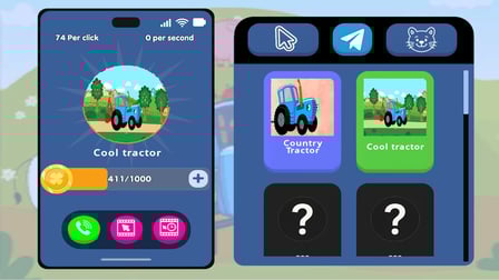 Playing Video Call with the Blue Tractor is straightforward. On a phone, simply tap the tractor on your screen to earn coins. On a computer, you can click the tractor with your mouse to initiate the same action. The more you tap, the more coins you accumulate!