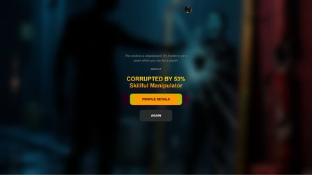 To play Why are you corrupt?, simply navigate the interface using your mouse or touch device. Engage with the thought-provoking prompts and answer questions that challenge your perception of morality. Each choice will lead you deeper into understanding your own values and beliefs. Reflect on each answer, as they shape your journey through the game.