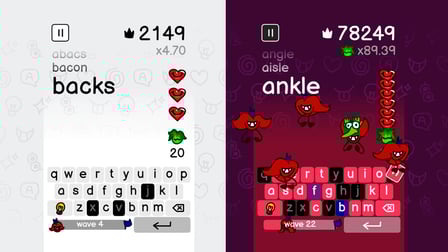 Use the keyboard to enter your words efficiently. On mobile, tap the screen to access the keyboard and type in the required 5-letter strings. Quick reflexes are necessary to input words before the Oomas manage to steal your letters!