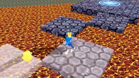 You control your character with WASD keys for movement and Space to jump. The camera follows behind you in third-person view, and you'll need to judge distances carefully—some platforms are tiny hexagons barely wider than your avatar. On mobile, you use the on-screen joystick and jump button. The physics feel floaty, so don't expect tight platforming like Mario. You'll overshoot jumps until you get used to the momentum.
