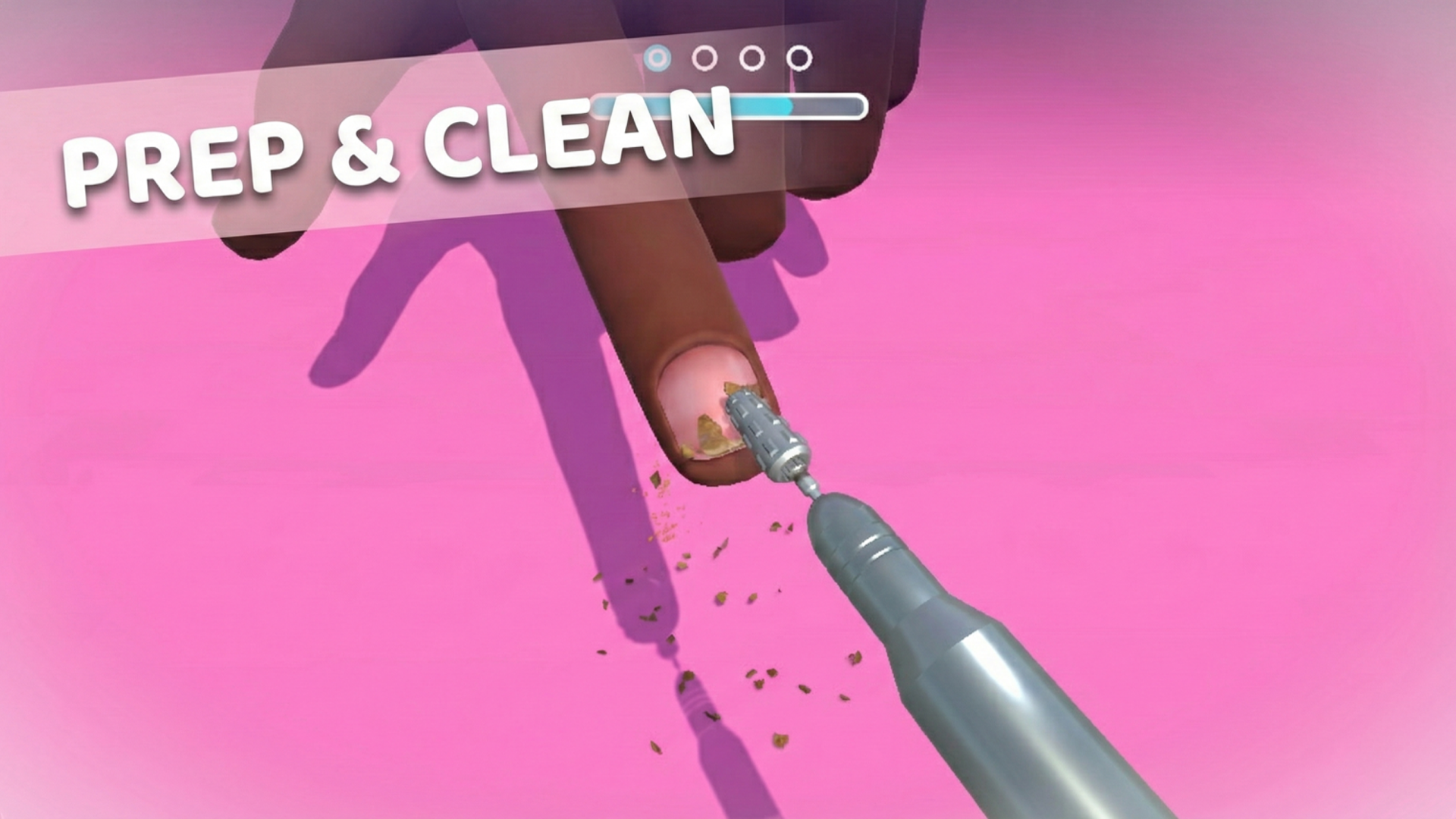 You start with a messy nail—old polish flaking off, rough edges, maybe some fake debris for drama. Grab the electric file and hold it over the gunk until the progress bar fills. The game wants you to feel the "cleaning" satisfaction, so take your time scrubbing every pixel. Once the nail is smooth and bare, you're ready to paint.