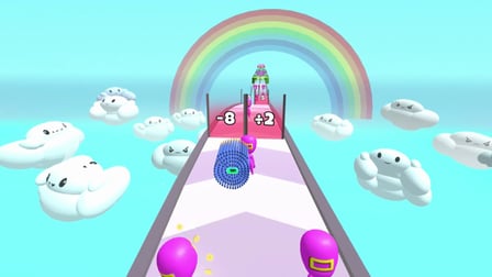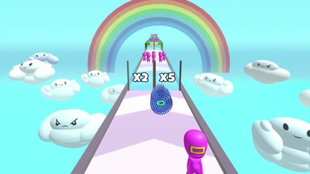 Untuk meningkatkan daya tembak, lewati gerbang dengan simbol perkalian dan penambahan serta kumpulkan sekutu stickman di sepanjang trek.