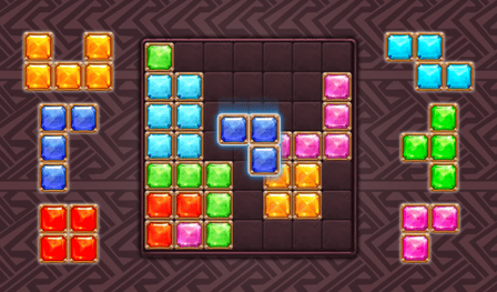 Memulai dengan Blok Harta Karun sederhana namun menantang. Seret dan lepas balok dari panel ke kisi, bertujuan untuk menyelesaikan garis penuh. Setiap baris yang diselesaikan akan hilang, memberi Anda poin dan memberi ruang untuk blok baru. Bersikaplah strategis dalam penempatan Anda untuk menghindari kehabisan ruang.