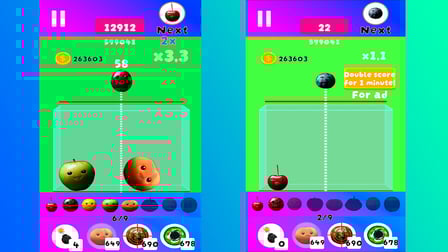 Dengan terus menggabungkan buah yang sama, kamu berkesempatan untuk mendapatkan buah langka. Menggunakan kekuatan khusus juga membantu meningkatkan hasil penggabunganmu!