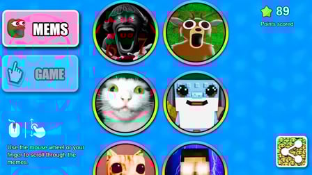 Mulailah perjalanan Anda melalui taman bermain meme atau kekacauan mengetuk dengan memilih mode Anda: