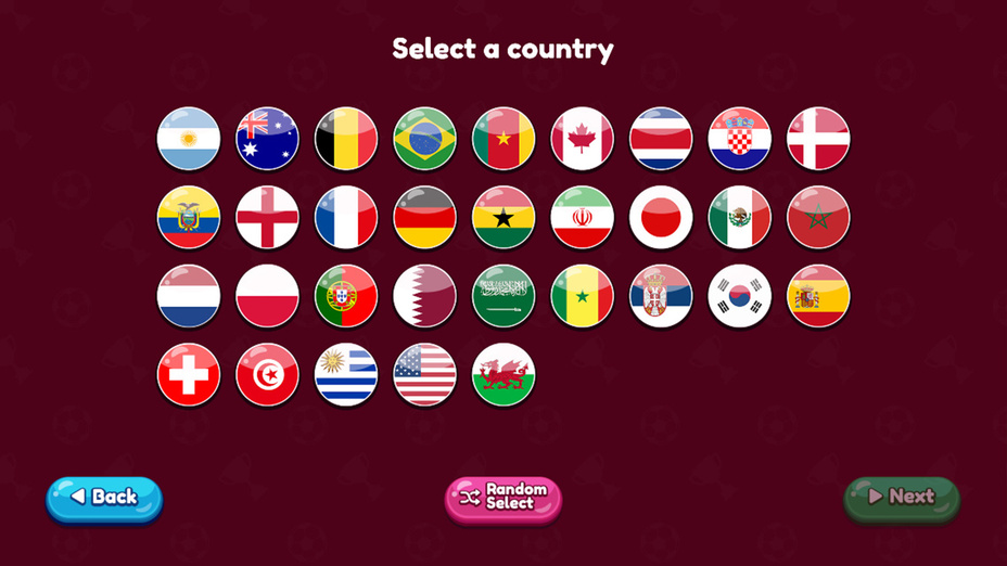 Anda dapat memilih dari total 32 tim nasional, semua terinspirasi oleh standar FIFA.