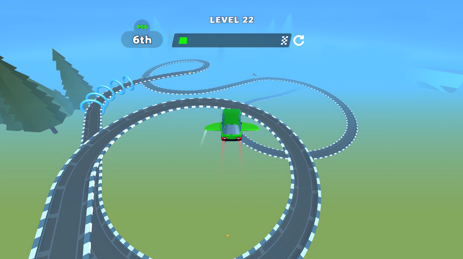 - Kumpulkan power-up di sepanjang jalan untuk meningkatkan performa mobil Anda