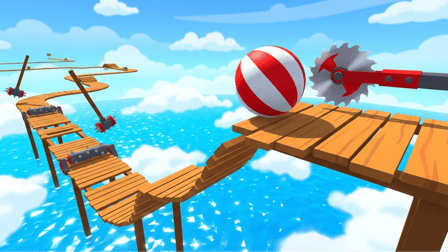 - Visual Minimalis: Gaya 3D yang bersih. Langit biru. Lintasan putih. Bola ungu. Berjalan tanpa lag di browser mana pun.