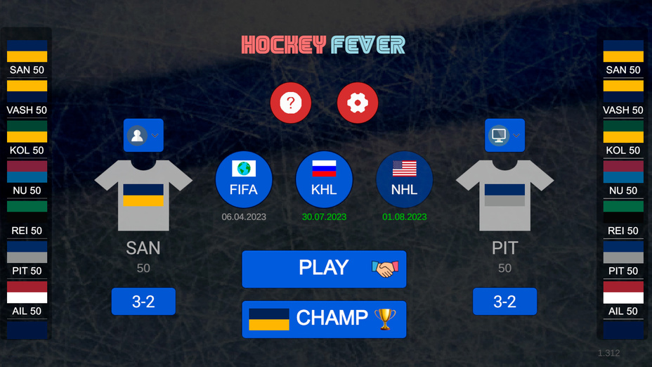 - Pilih tim Anda dari berbagai negara, perhatikan peringkat IIHF, KHL, atau NHL mereka.