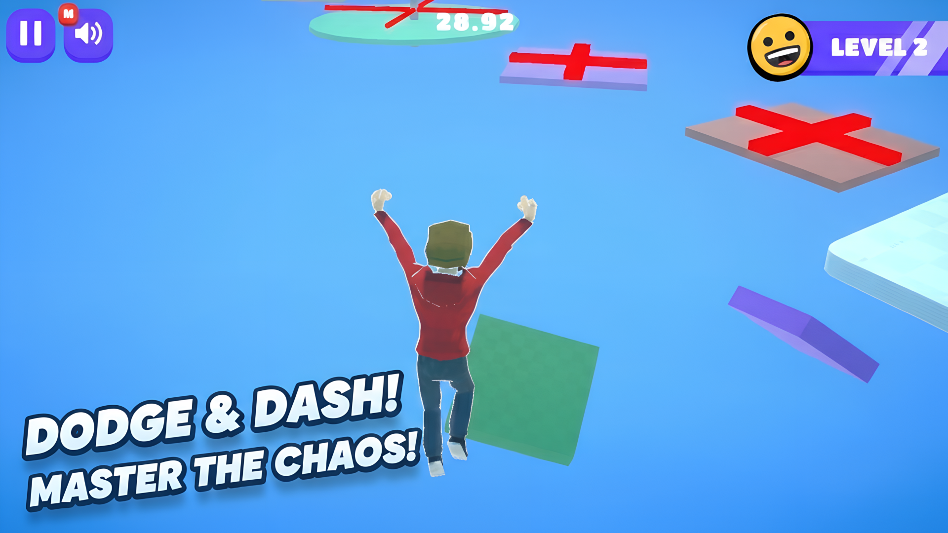 - 25 Level Unik: Setiap tahap memperkenalkan rintangan baru, mulai dari kapsul raksasa yang berputar hingga platform yang menghilang ditandai dengan X merah mematikan.