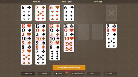 - Selalu mencoba untuk mengosongkan kartu dan memasukkannya ke tumpukan pondasi bila memungkinkan.