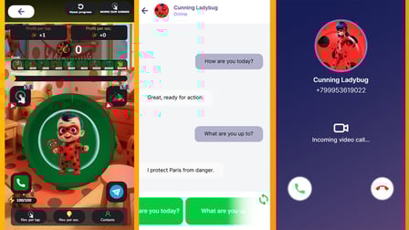 - **Tombol Panggilan Video**: Klik untuk memulai interaksi video dengan Ladybug dan Cat Noir.