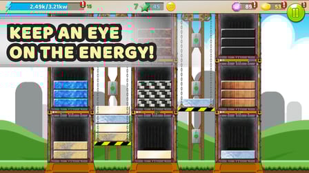 Memainkan Lift & Sort itu mudah! Pada Anda komputer, gunakan mouse Anda untuk mengklik dan memilih blok, lalu seret ke lift. Pada Anda telepon, cukup ketuk blok dan pilih tujuan. Selalu pastikan bahwa warna sesuai dengan wadahnya, dan pantau konsumsi energi Anda dengan cermat.