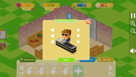 Fitur termasuk manajemen toko lengkap, opsi pengembangan, elemen sosial untuk mengunjungi teman, dan opsi penyesuaian yang memungkinkan Anda mendesain toko sesuai selera.