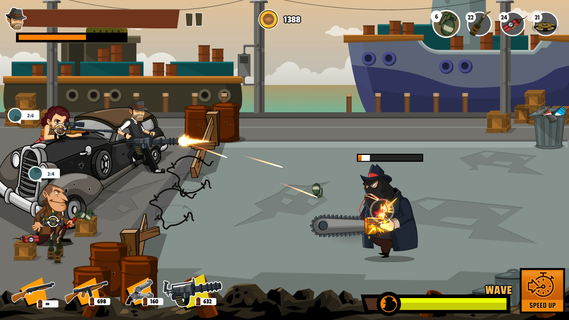 Memulai dengan Mafia Wars sangat sederhana. Mulailah dengan memilih senjata Anda dan meningkatkan melalui UI permainan. Dalam pertempuran, ketuk karakter untuk menandai target tembakan Anda, tetapi ingat, ada sedikit keterlambatan sebelum peluru Anda mencapai tujuan. Sesuaikan strategi Anda dengan beralih antara senjata sesuai kebutuhan.