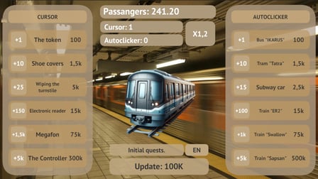 Siap untuk petualangan mengklik? Metro Clicker membawa Anda ke dalam pengalaman yang menarik di mana setiap ketukan berarti. Saat Anda mengklik kereta, Anda mendapatkan penumpang yang dapat Anda gunakan secara strategis untuk membeli peningkatan penting yang meningkatkan permainan Anda. Tujuan utama adalah untuk memperoleh semua peningkatan, yang mengundang Anda untuk terus menekannya saat tantangan semakin meningkat.