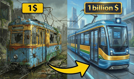 Dapatkan uang. Belanjakan di tiga jalur: Kecepatan Trem (mulai dari 13 km/jam, capai lebih dari 500 km/jam), Harga Tiket (kalikan pendapatan per perjalanan), Panjang Jalur (buka biome baru, dorong hingga 1500m). Biaya meningkat secara eksponensial. Tombol hijau artinya terjangkau. Abu-abu? Teruslah berjuang. Buka model trem baru dengan referensi—masing-masing lebih cepat, lebih ramping, lebih layak meme.