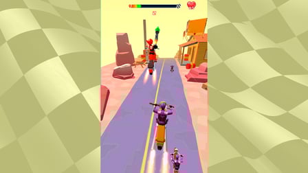 Moto Bandit adalah gim balap penuh aksi di mana kecepatan dan strategi sama pentingnya. Gim ini menampilkan berbagai sepeda motor dan berbagai macam senjata, memungkinkan pemain untuk menyesuaikan pengalaman balapan mereka. Tujuan utamanya adalah untuk memenangkan balapan dengan cara apa pun yang diperlukan, baik itu mengalahkan lawan Anda atau menggunakan gudang senjata Anda untuk menjatuhkan mereka. Kombinasi grafik yang hidup, gameplay yang dinamis, dan sensasi kompetisi membuat Moto Bandit permainan wajib bagi penggemar balap.